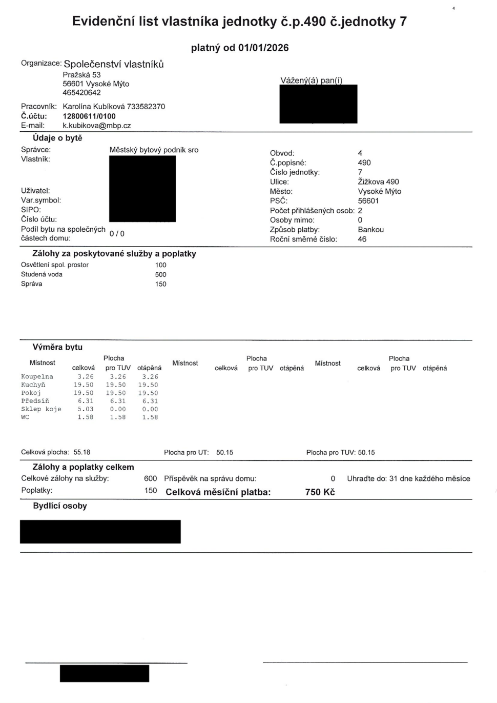 Plocha bytu: 50 m²