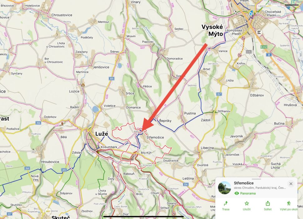 A pokud přeci jenom zatoužíte po ruchu města, není to daleko - Luže do 5min., Vysoké Mýto - do 12 min., Pardubice a Hradec Králové do 40 min., Chrudim do 25 min. a Litomyšl do 20min.
